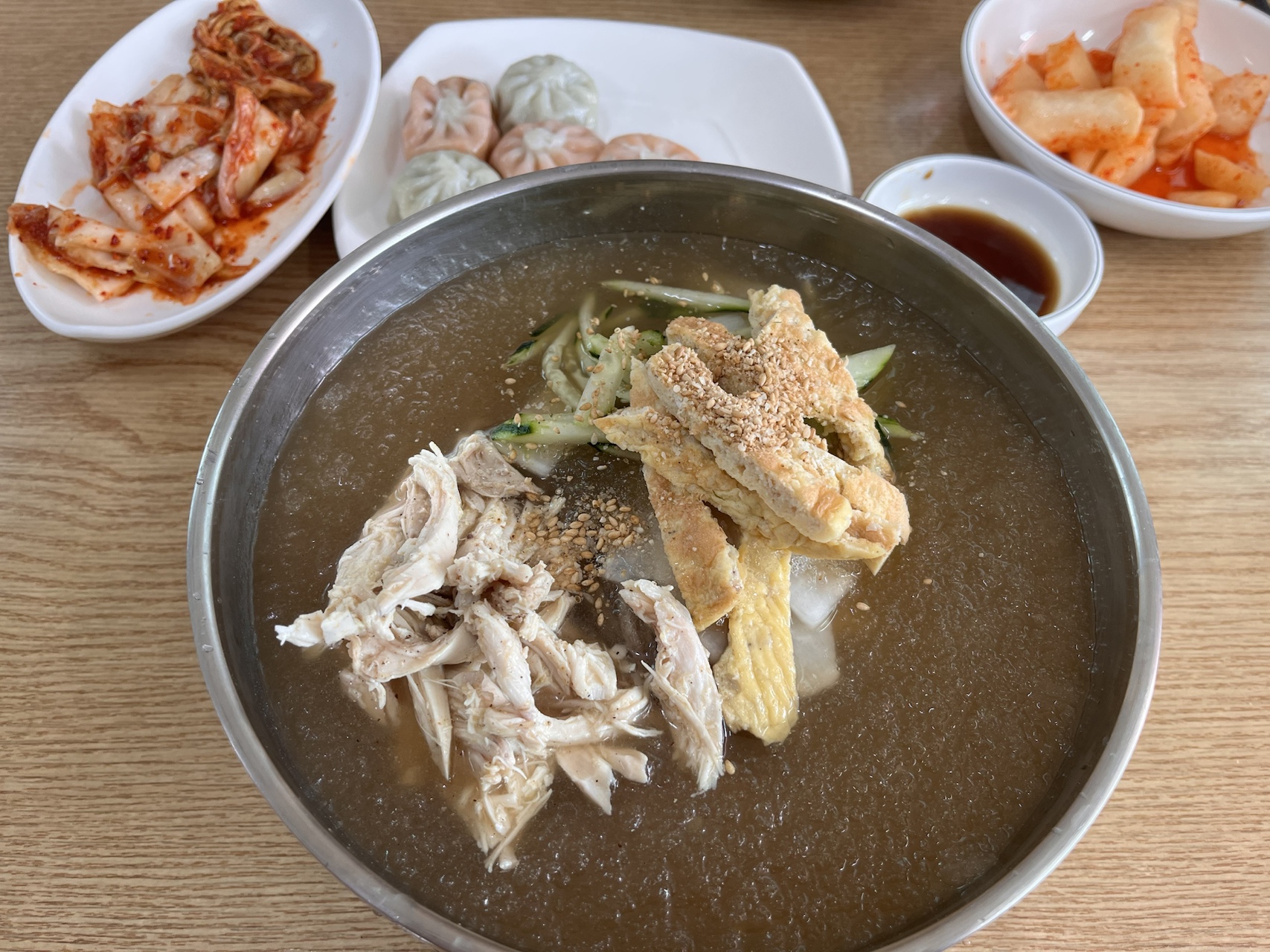 닭육수와 식초, 겨자 등이 들어가 있어 새콤하고 깔끔한 맛이 좋다.